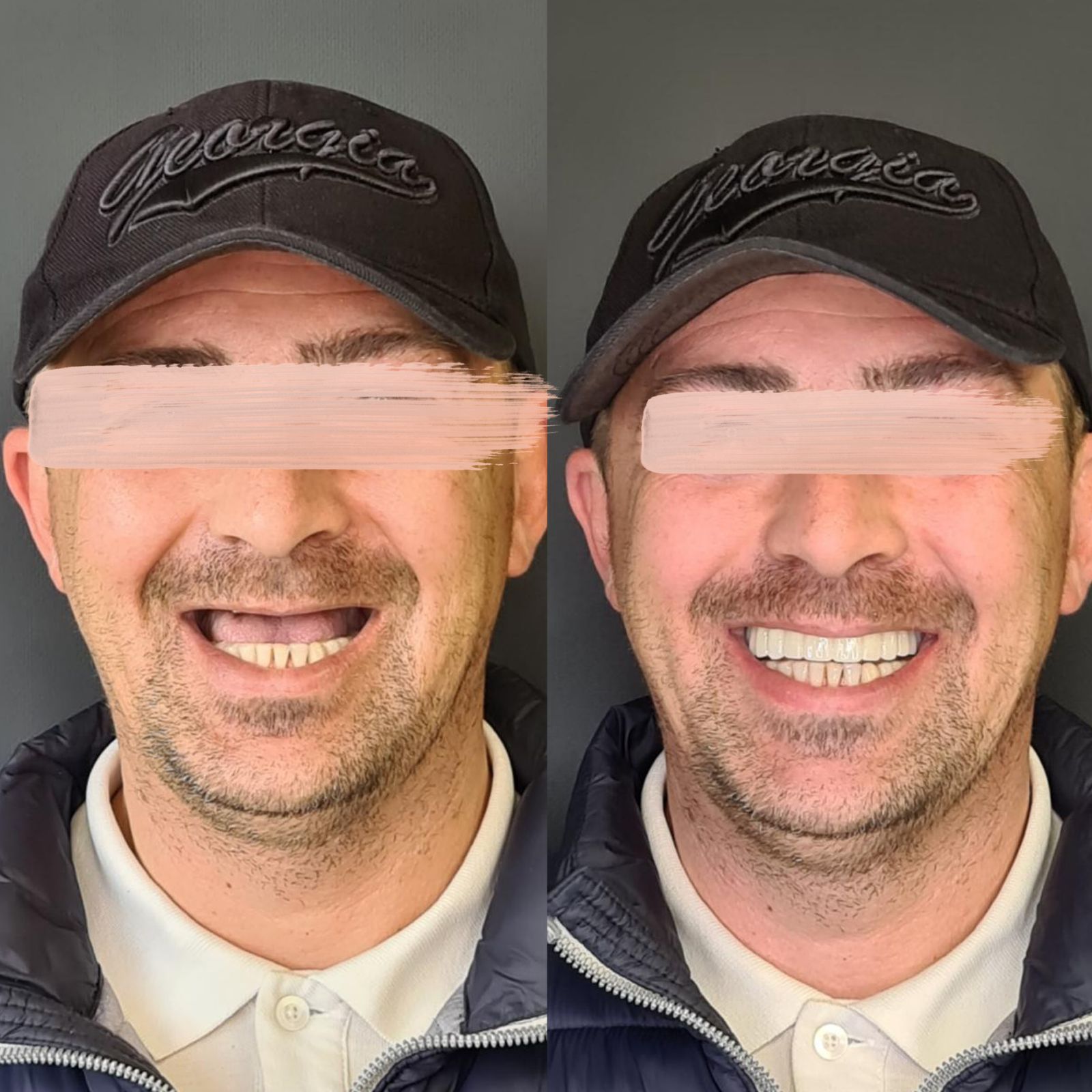 Se necessario, si procede inizialmente con l’estrazione dei denti compromessi, così da preparare correttamente l’arcata all’inserimento degli impianti. In seguito viene eseguito l’intervento di posizionamento implantare e, trascorse circa 72 ore, viene applicata una protesi provvisoria fissa. Questa soluzione temporanea ti accompagnerà fino alla fase successiva, permettendoti di sorridere e masticare con serenità fin da subito.